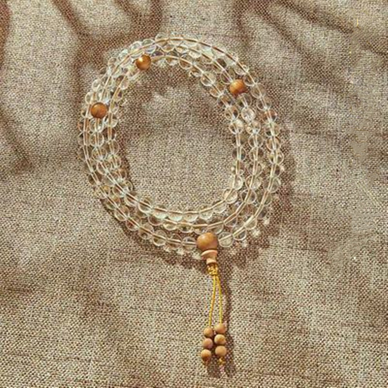 Natural White Crystal 108 Multi-circle Bracelet with Indian Old Sandalwood Bracelet Women's All-match Small Fresh