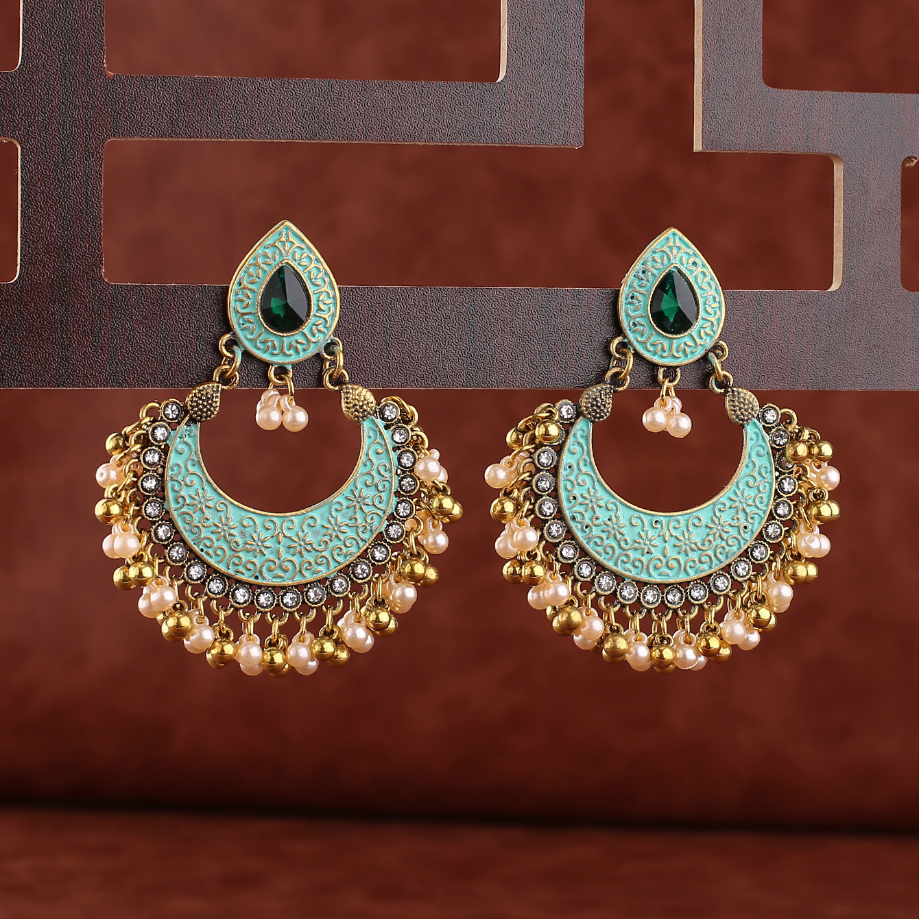 Moon Alloy Earrings Jewelry Exaggerated Retro Indian Style Hollow Bell Pendant Design Ear Stud Jewelry