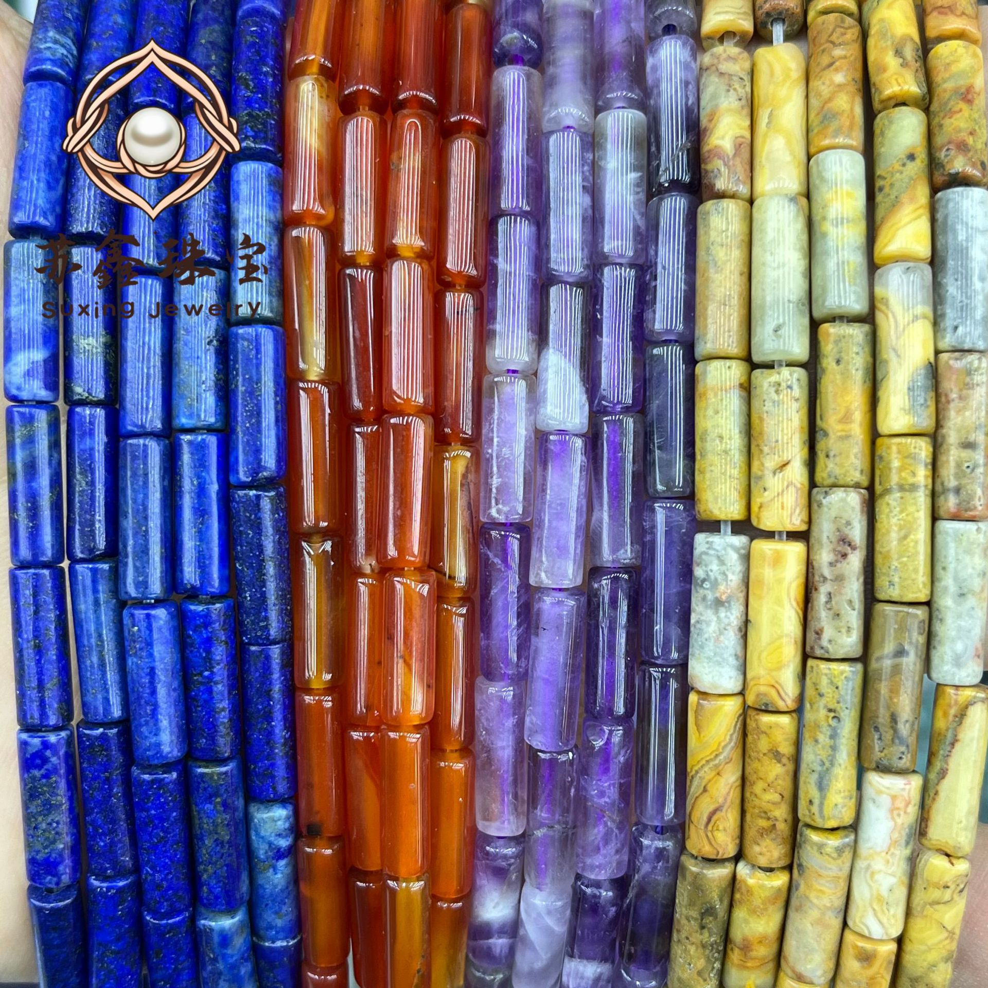 4*13mm natural stone tube beads cylindrical round tube beads semi-finished handmade DIY necklace bracelet accessories wholesale