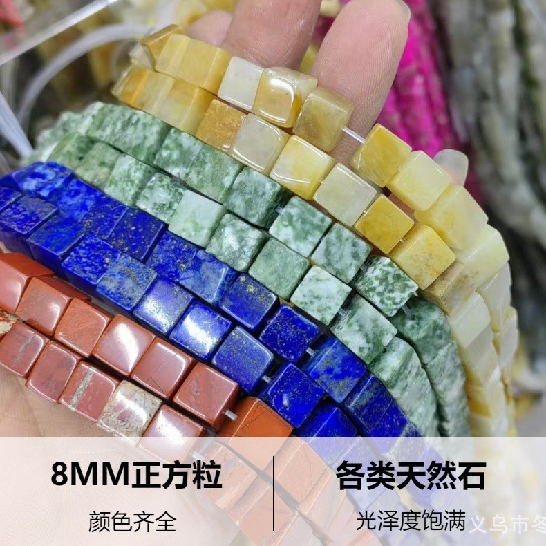 Natural Stone 8MM Square Grain Scattered Beads Straight Hole Square Beads Bracelet Necklace Semi-finished DIY Jewelry Accessories