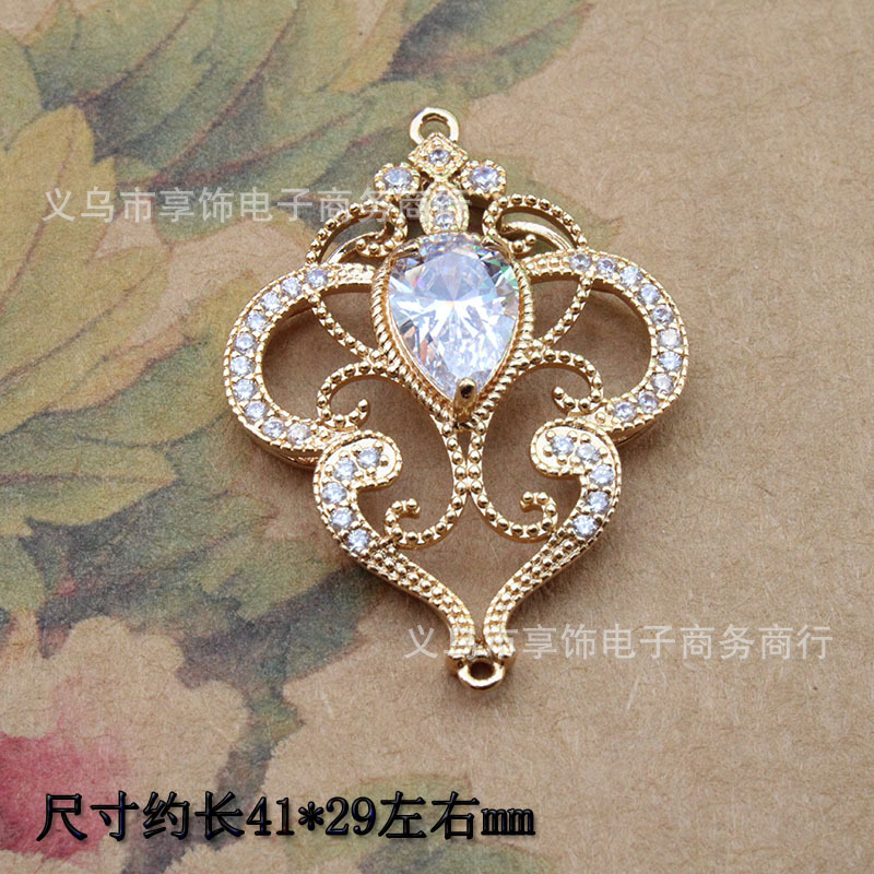 Copper micro inlaid zircon glass double hanging Hanfu Indian version headdress diy hand earrings necklace hairpin jewelry accessories
