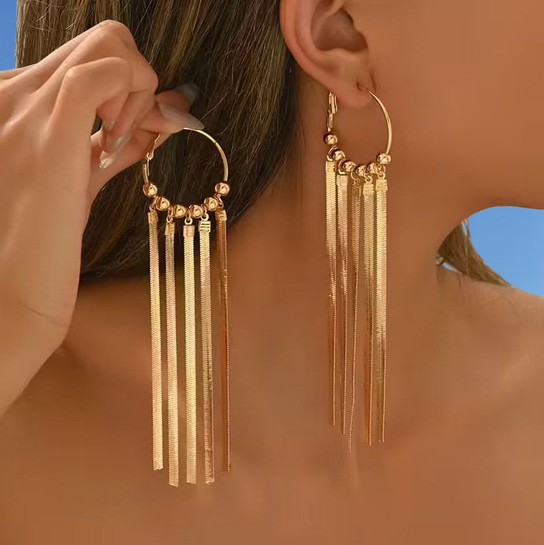 Cross-Border Women's Flat Snake Chain Tassel Temperament Hoop Women's Earrings Women's Indian Jewelry Chain Pendant Earrings
