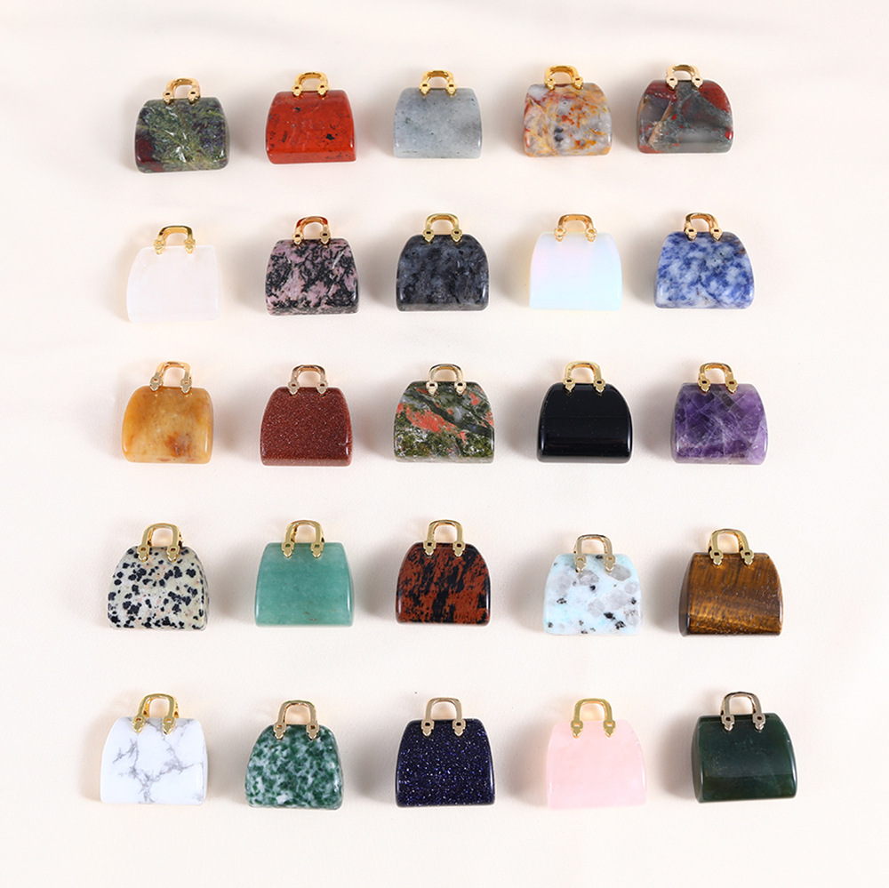 Natural Crystal Stone Mini Handbag Pendant Ornaments Decorative Powder Crystal DIY Necklace Pendant Accessories Wholesale
