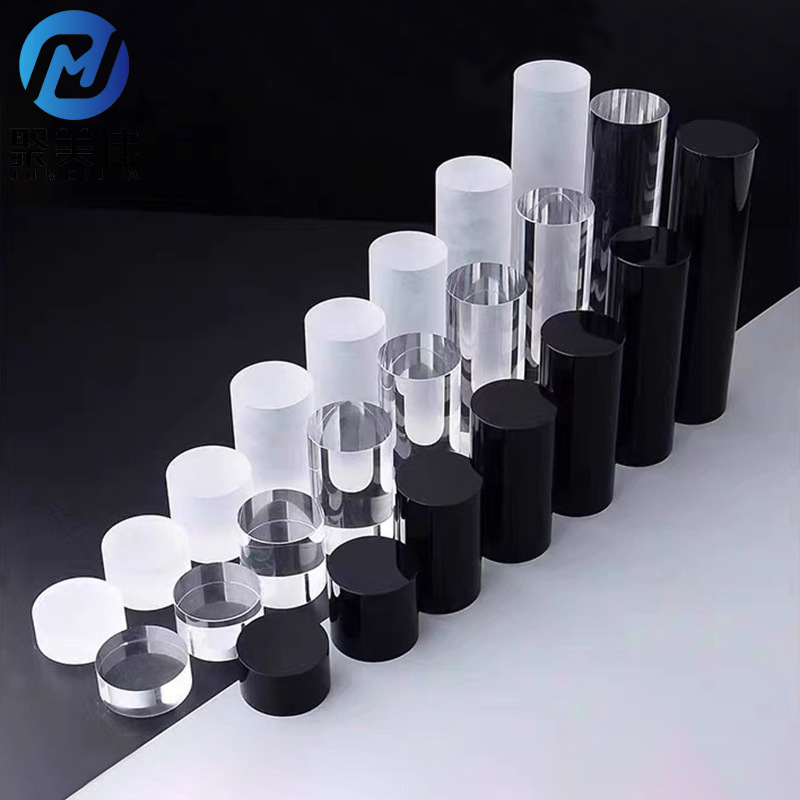 Acrylic High-Transparency Cylindrical Rod Figurine Jewelry Display Stand Black Transparent Base Round Display Stand