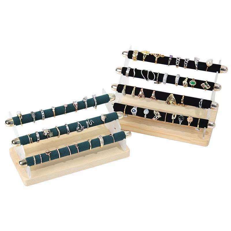 Light Luxury Suede Solid Wood Acrylic Three-Layer Ring Storage Rack Ring Display Rack Jewelry Stall Display Props