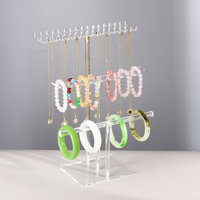 Acrylic Detachable Double-layer T-shaped Necklace Storage Rack Bracelet Bracelet Display Stand Cross-border Jewelry Props
