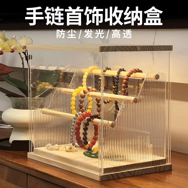 Acrylic Wooden Jewelry Display Stand Multi-Layer Dust-Proof Transparent with Charging Storage High-End Jewelry Display Stand New Style