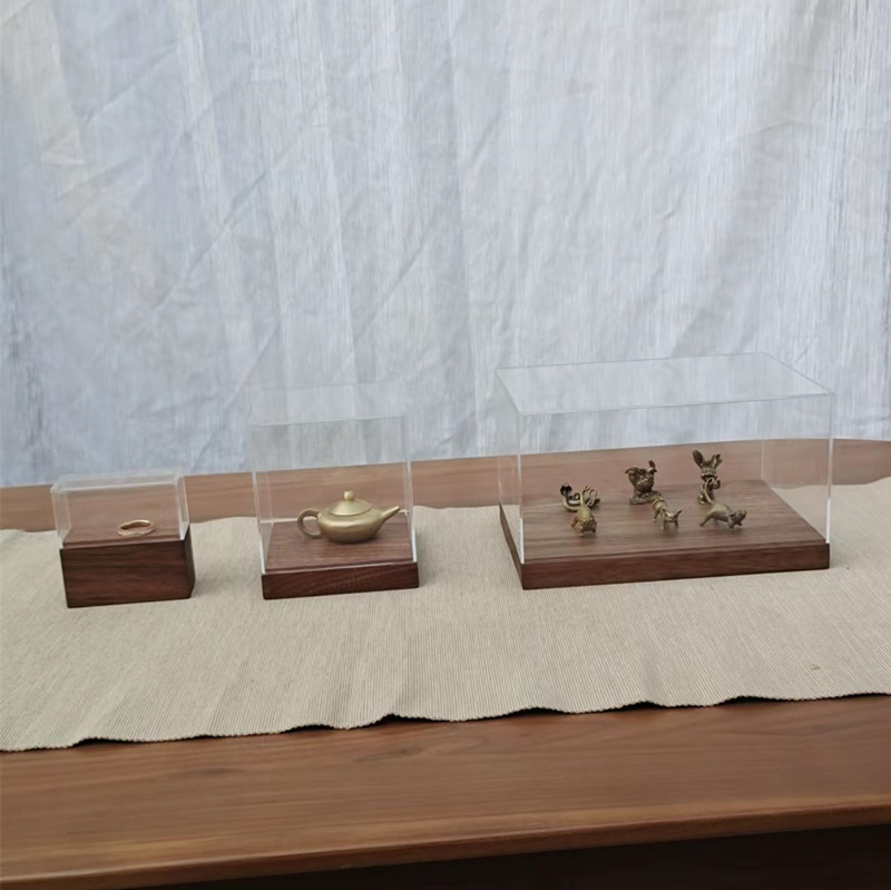 Black Walnut Solid Wood Acrylic Display Stand Jewelry Storage Jewelry Ring Gift Figure Base Holder Transparent Box