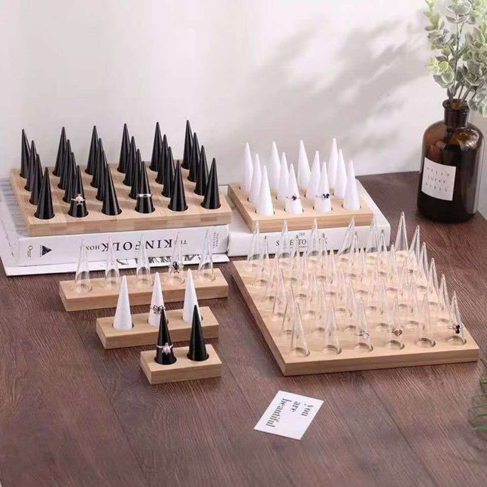 Bamboo acrylic ring display stand conical counter ring bracket jewelry rack jewelry rack jewelry display