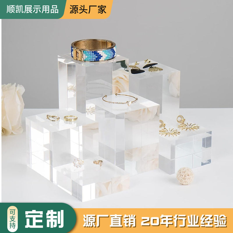 Manufacturer Wholesale Transparent Square Acrylic Brick Crystal Base Jewelry Antique Model Ornament Display Holder