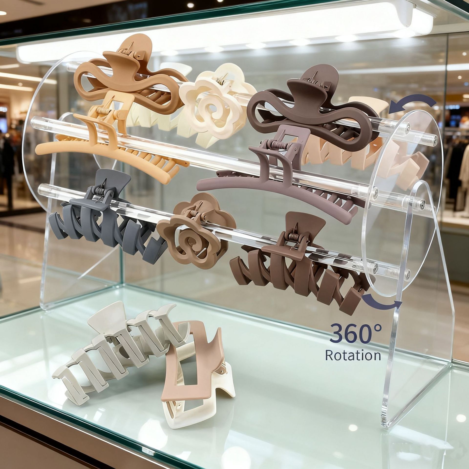 Cross-Border Hot-Selling 360-Degree Rotating Acrylic Clip Hairpin Hair Hoop Display Stand Shark Clip Transparent Watch Display