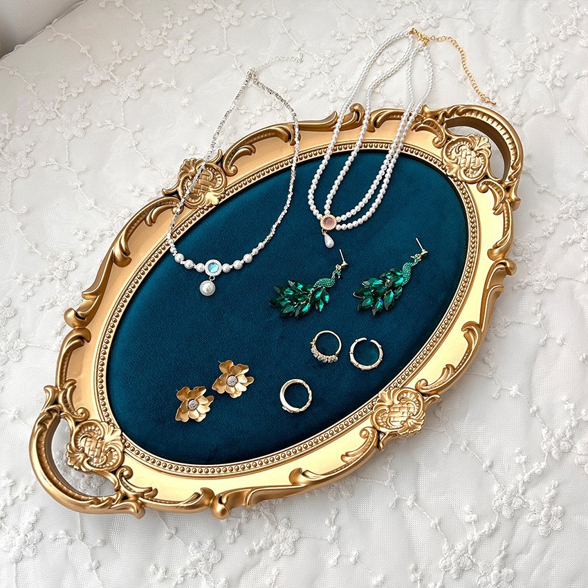 Vintage Jewelry Tray Necklace Bracelet Earrings Look at Pallet Gold Plastic Border Jewelry Storage Shooting Props