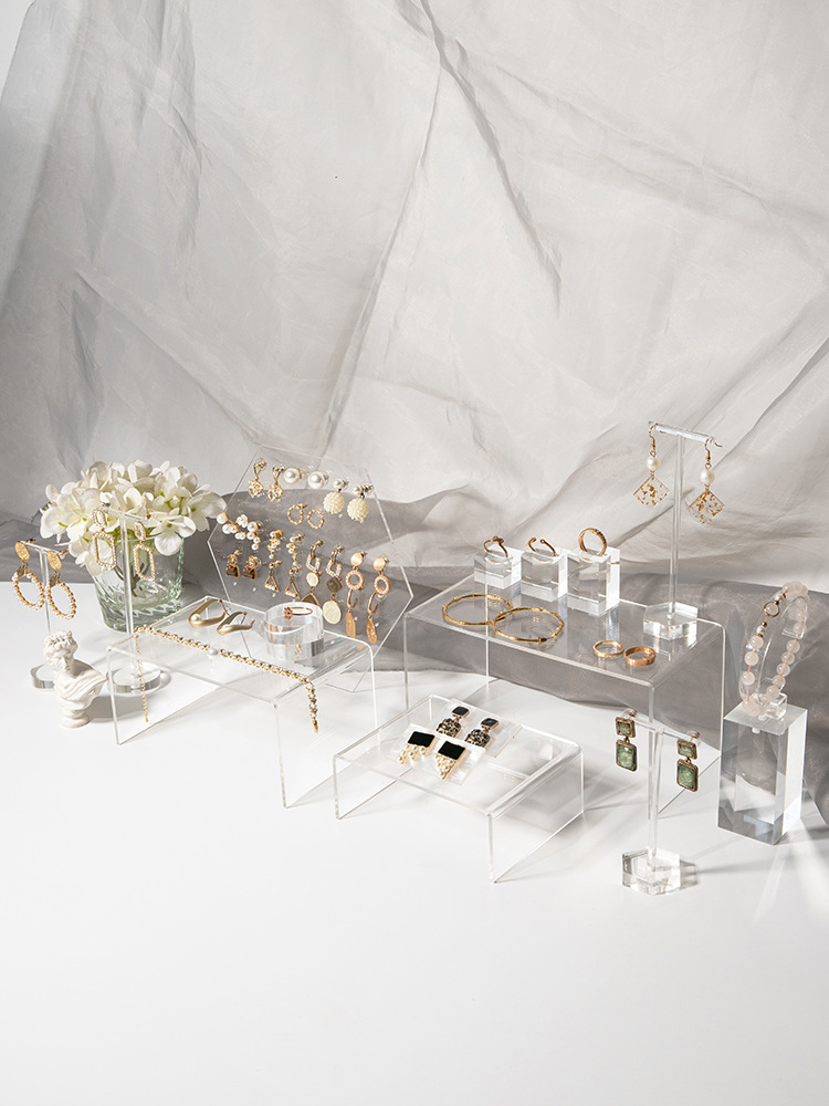 Transparent Acrylic Desktop Ladder Jewelry Display Stand Jewelry Booth Cylindrical Ring Stand Photography Props