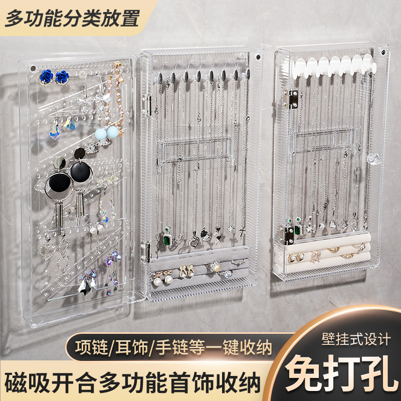 Transparent Dust-Proof Necklace Earring Display Stand Earring Storage Box Necklace Stand Household Hanging Punch-Free Jewelry Box