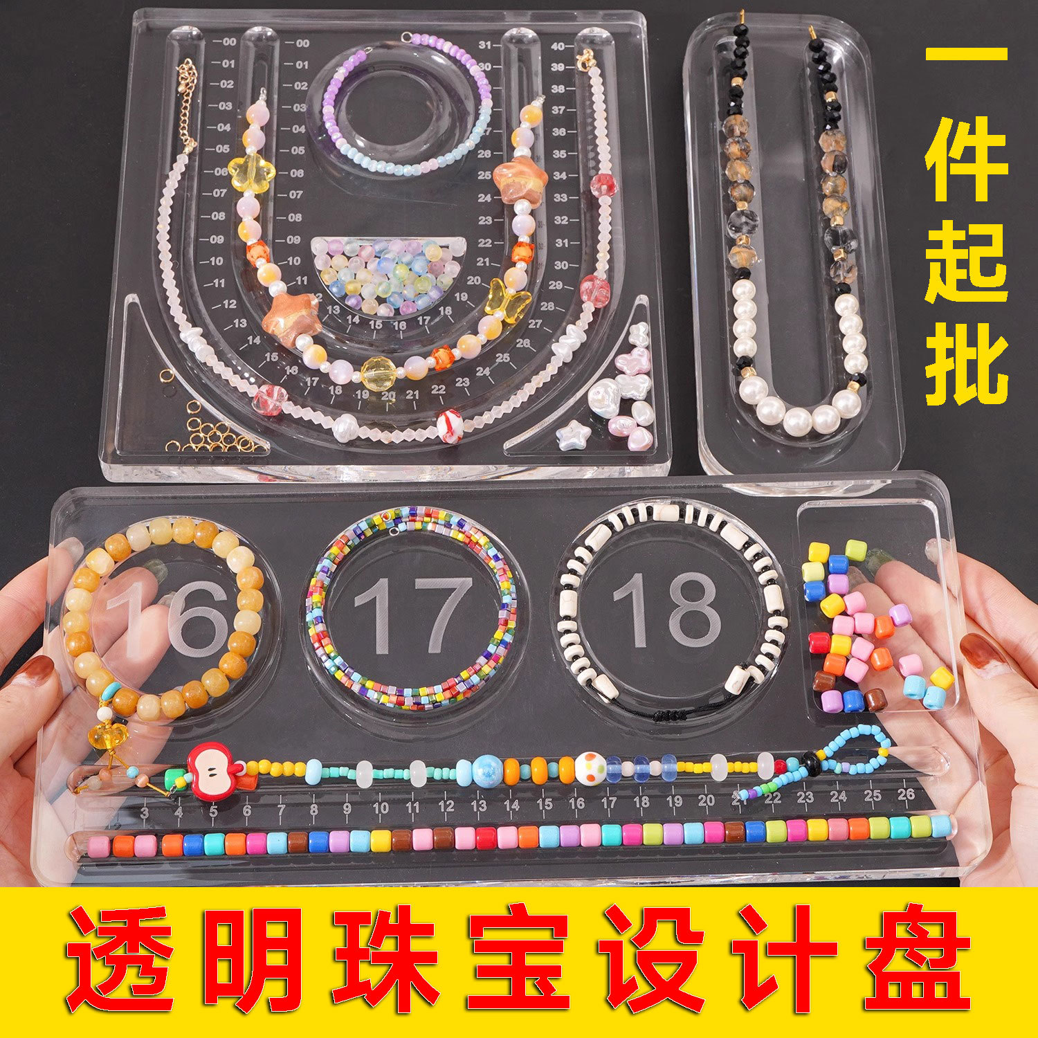 2025 Transparent Acrylic Design Disc Video Jewelry Tray Crystal Beaded Disc Handmade DIY Transparent Display Disc