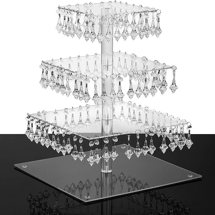 4-Layer Round Acrylic Cake Stand Crystal Pendant Led Light Wedding Holiday Display Stand Cake Stand