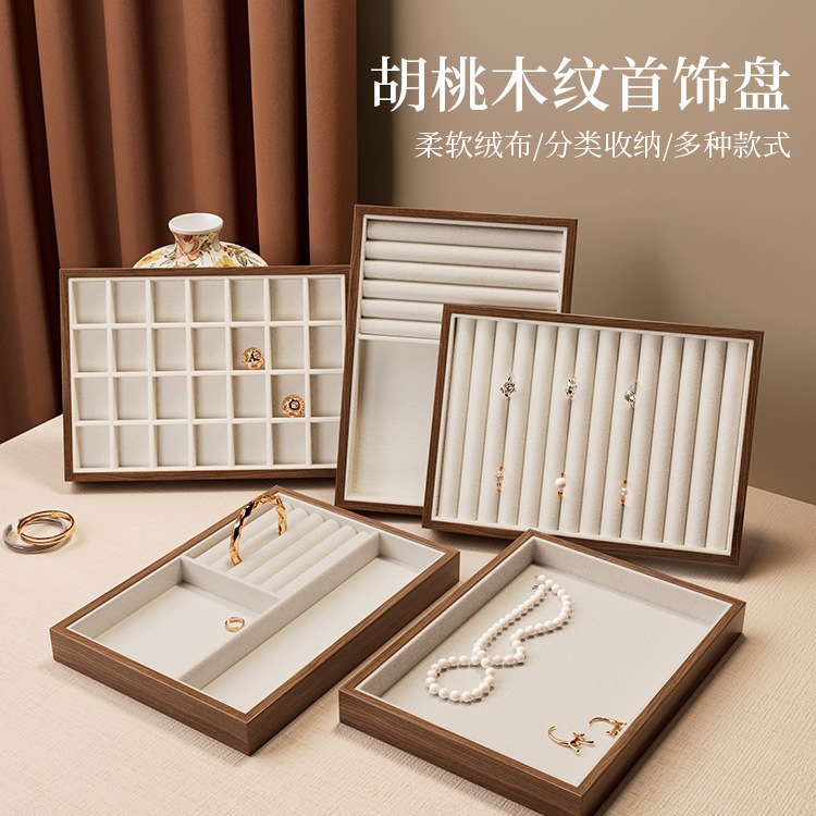 Jewelry Tray Walnut Retro Jewelry Display Tray for Jewelry Necklace Bracelet Ring Earrings Earrings Display Stand