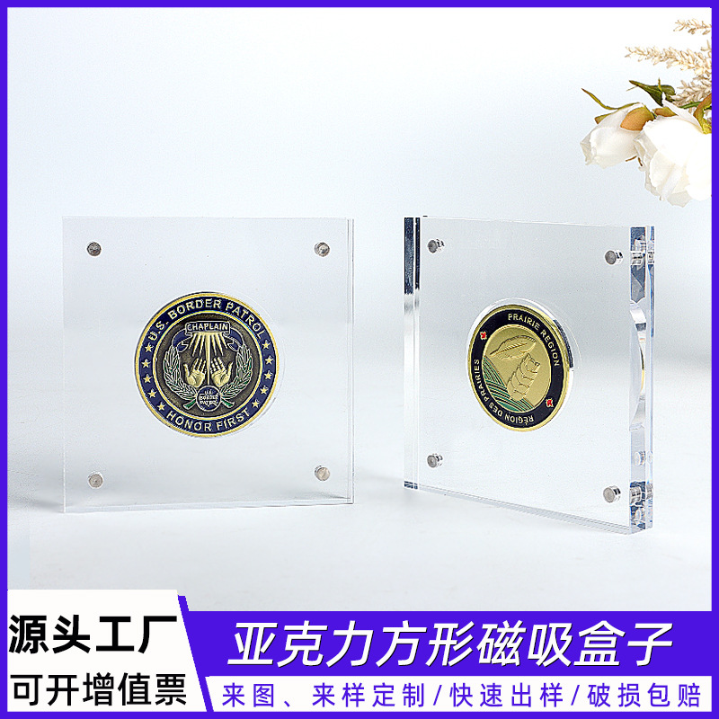 Transparent Acrylic Bar-Shaped Card Brick Magnetic Box Plexiglass Gold Coin Badge Commemorative Coin Collection Box Custom Square