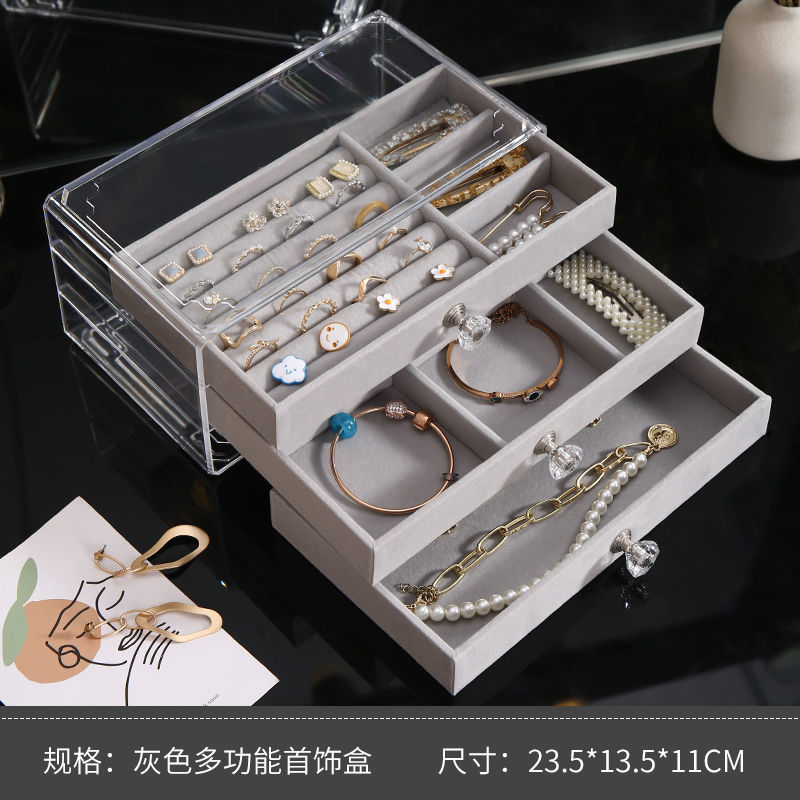 Flannel jewelry storage box acrylic desktop drawer earrings necklace anti-oxidation storage box a generation of hair