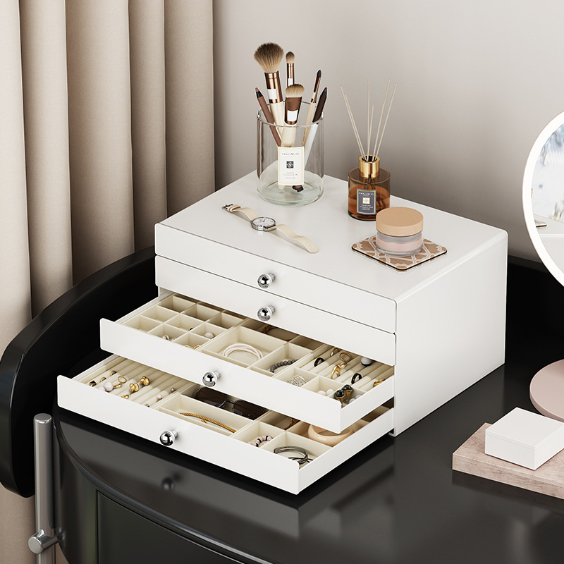 Large Capacity Cosmetics Skin Care Storage Box Desktop Finishing Rack with Drawer Finishing Dressing Table Light Luxury Jewelry Rack