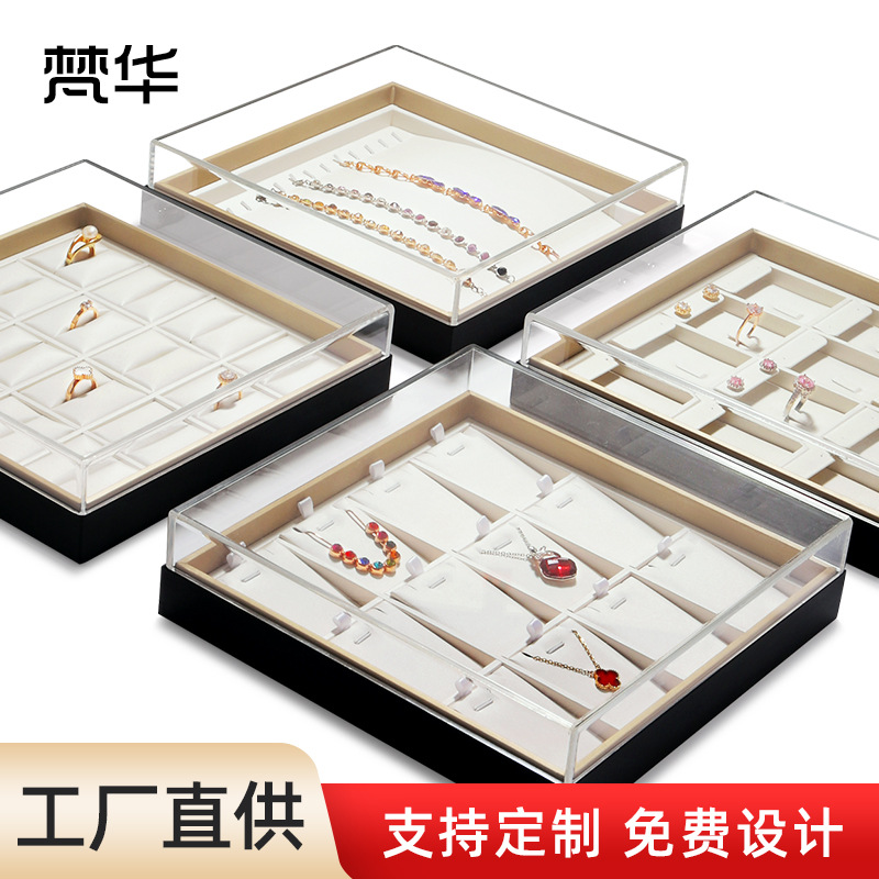 High-grade jewelry storage plate acrylic cover jewelry counter display props window ring necklace earrings display plate
