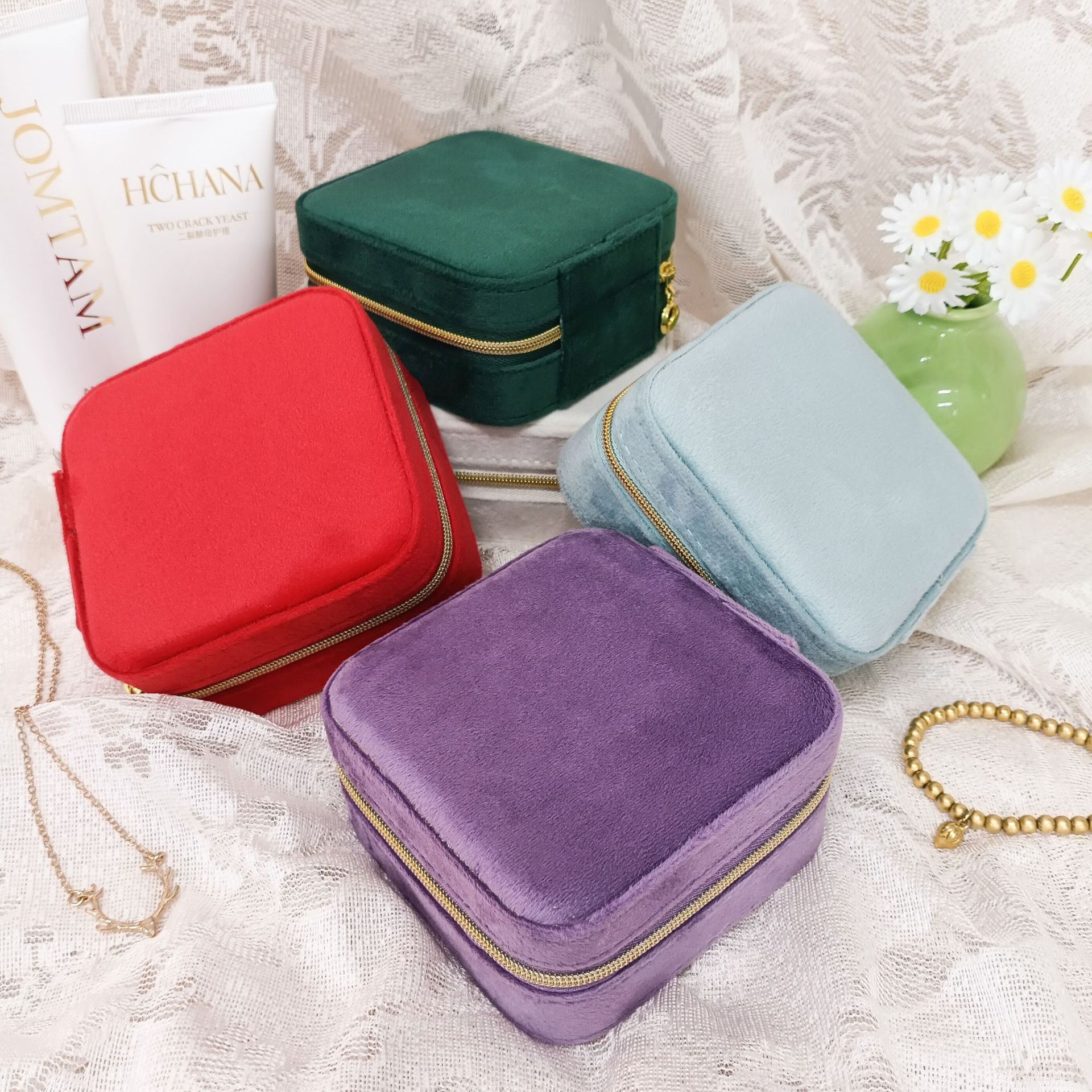 Multi-Color Square Velvet Jewelry Box Necklace Ring Earrings Storage and Organization Box American B&B Practical Jewelry Box