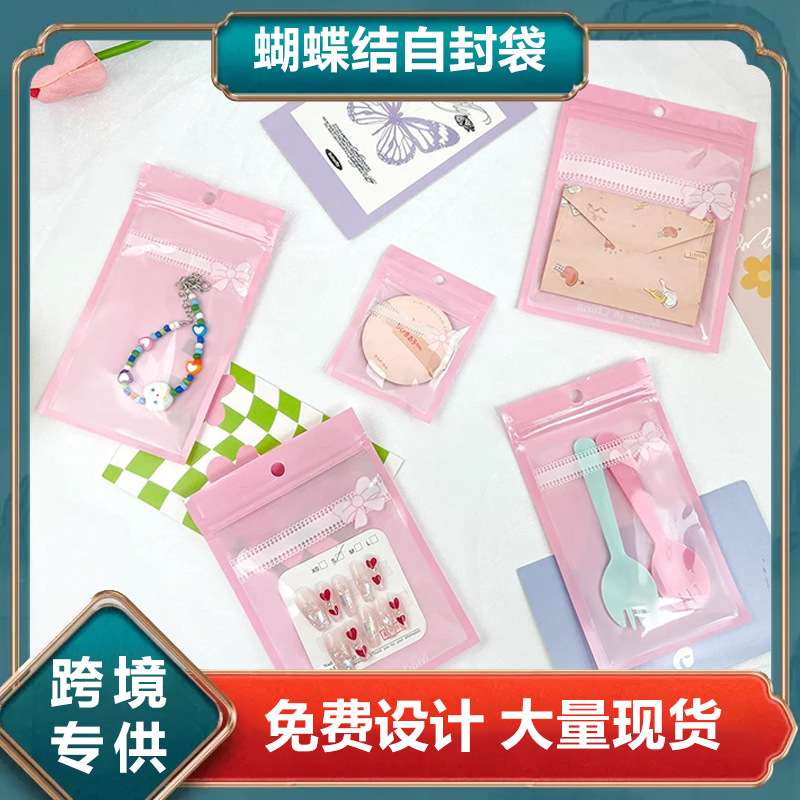 Necklace Jewelry Sealed Ziplock Bag Earrings Anti-Oxidation Plastic Bag Pink Bow Powder Puff Cosmetic Packaging Bag