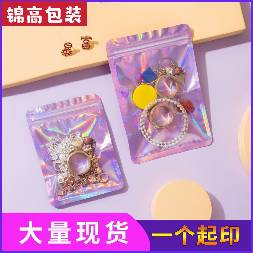Anti-oxidation food bag Jewelry earrings packaging bag necklace ziplock bag holographic laser inner printing color plastic bag