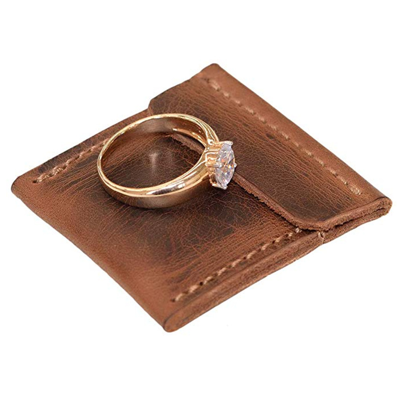 in stock anti-oxidation top layer cowhide ring leather case travel necklace earrings storage small bag vintage cowhide jewelry bag