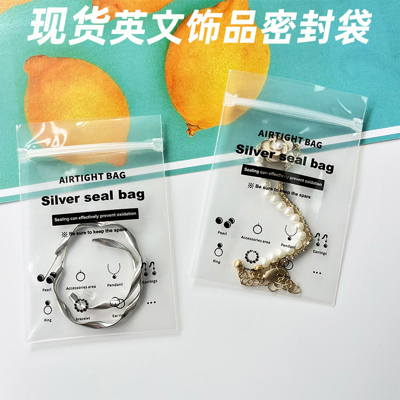 in stock English silver anti-oxidation sealed bag jewelry necklace ring bracelet storage bag frosted small size self-sealing bag