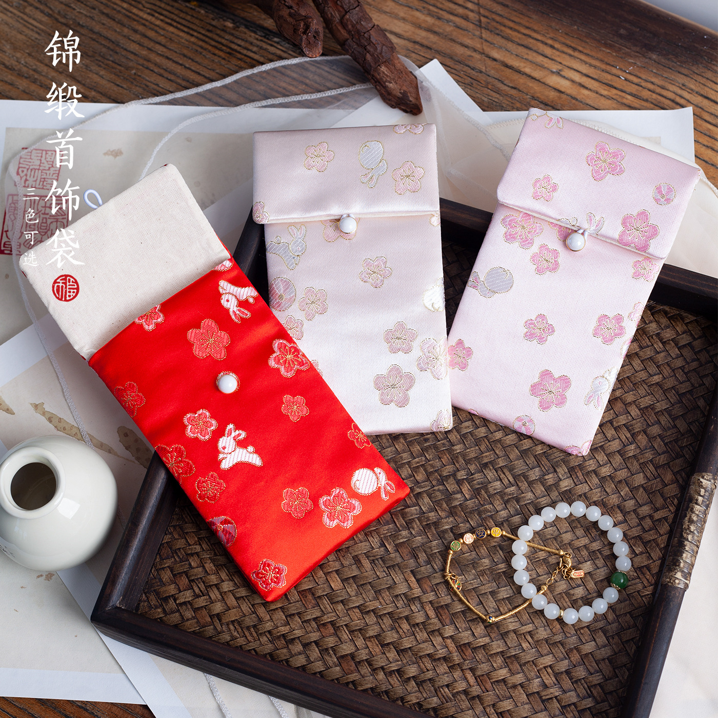 Jewelry Jewelry Cloth Bag Chinese Jewelry Bag Wen Play Handstring Brocade Embroidered Button Bag Bracelet Bag Handstring Bag Beam Mouth