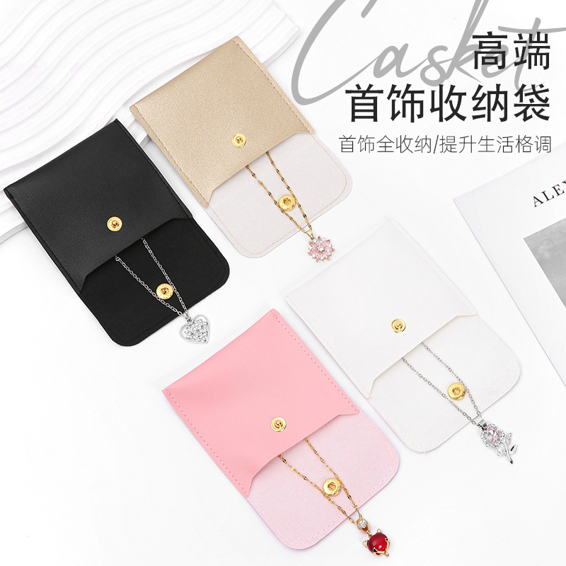 PU leather jewelry packaging bag niche snap button design necklace ring bracelet anti-oxidation storage bag wholesale