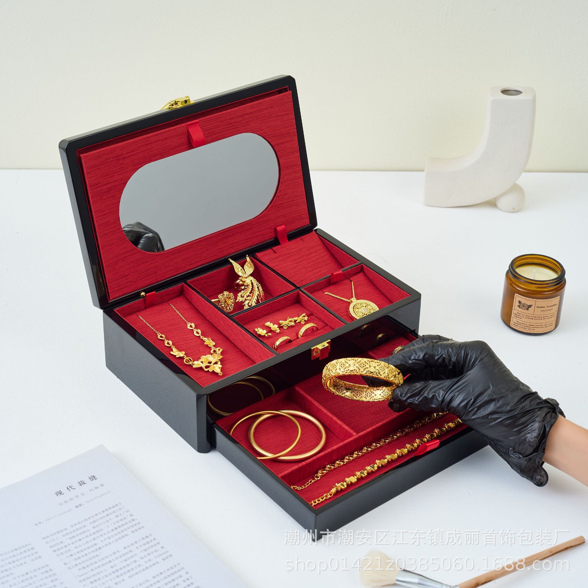 Old Store Gold Same Style Large Capacity Anti-Oxidation Two-Layer Three-Layer Ring Necklace Bracelet Bracelet Storage Box Jewelry Box