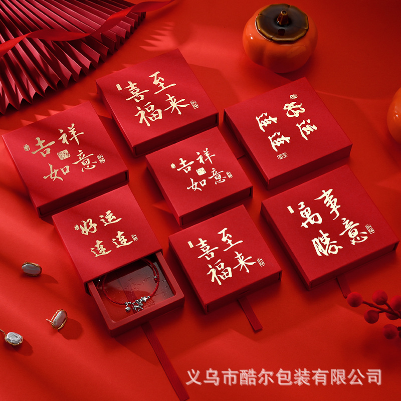 Spot Hot Stamping Anti-Oxidation Jewelry Packaging Box Chinese Style Ring Earrings Storage Gift Small Items Packaging Wholesale