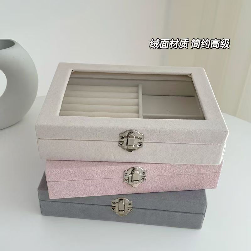 Large-Capacity Jewelry Box Velvet Jewelry Box Ring Necklace Earrings Storage Box High-End Portable Dust-Proof Box