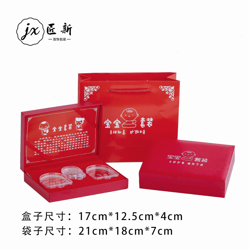 Baby Silver Jewelry Set Box, Full Moon Three-Piece Gift Box, Includes Acrylic Silver Set Box, Anti-Oxidation Bracelet
