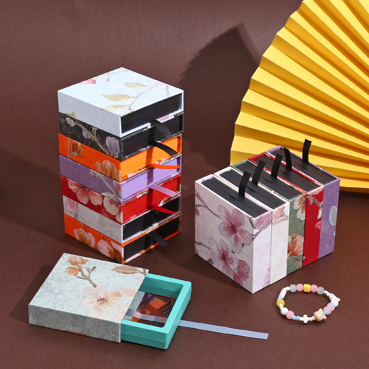 Luxurious Chinese-Style Pe Film Jewelry Display Anti-Oxidation Packaging Color Box Drawer-Type Jewelry Bracelet Storage Box Batch