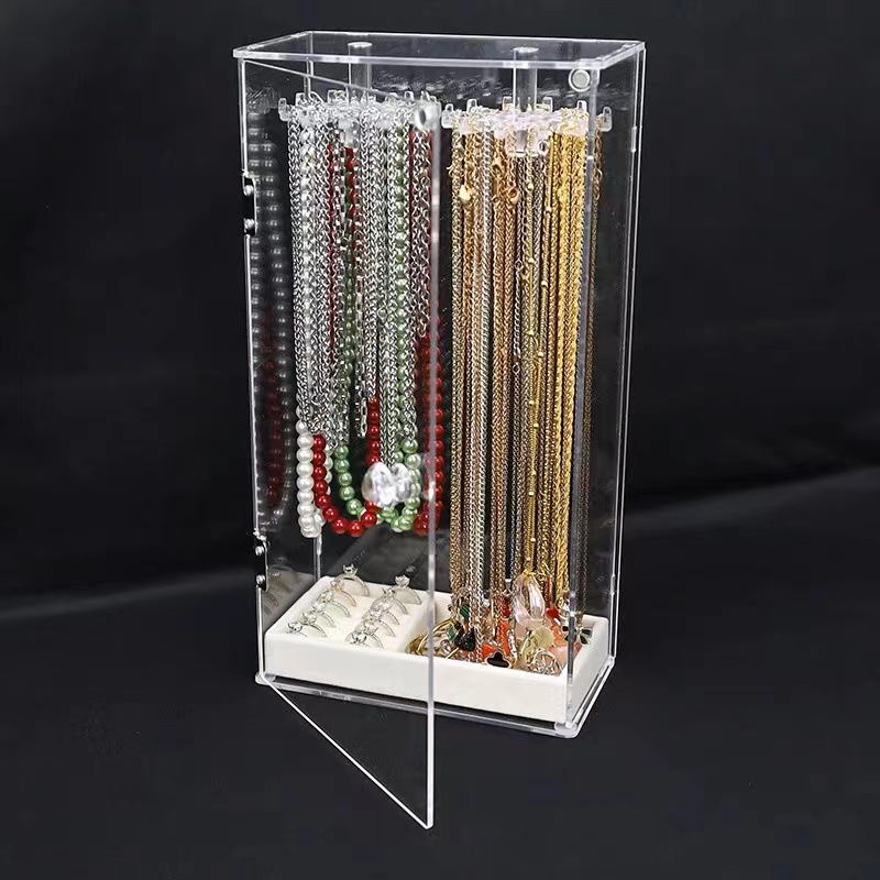 Cross-Border New Product Necklace Bracelet Desktop Storage Rack Acrylic Hanging Rack Storage Box Dustproof Necklace Display Rack