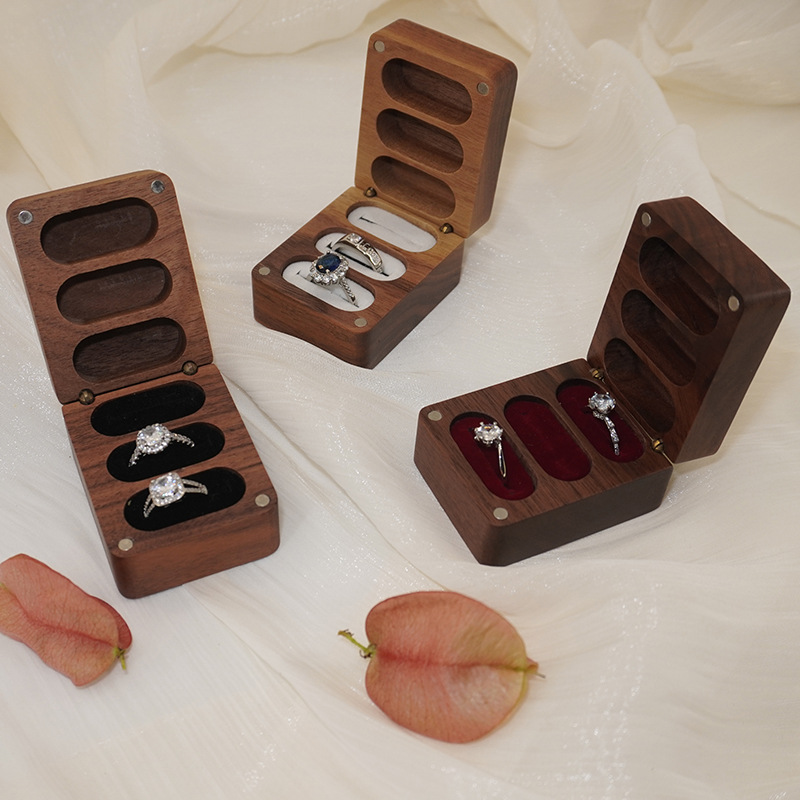 Jewelry Box Black Walnut Wood Box Proposal Engagement Ring Storage Box Earring Box Exchange Gift Three-Slot Anti-Oxidation