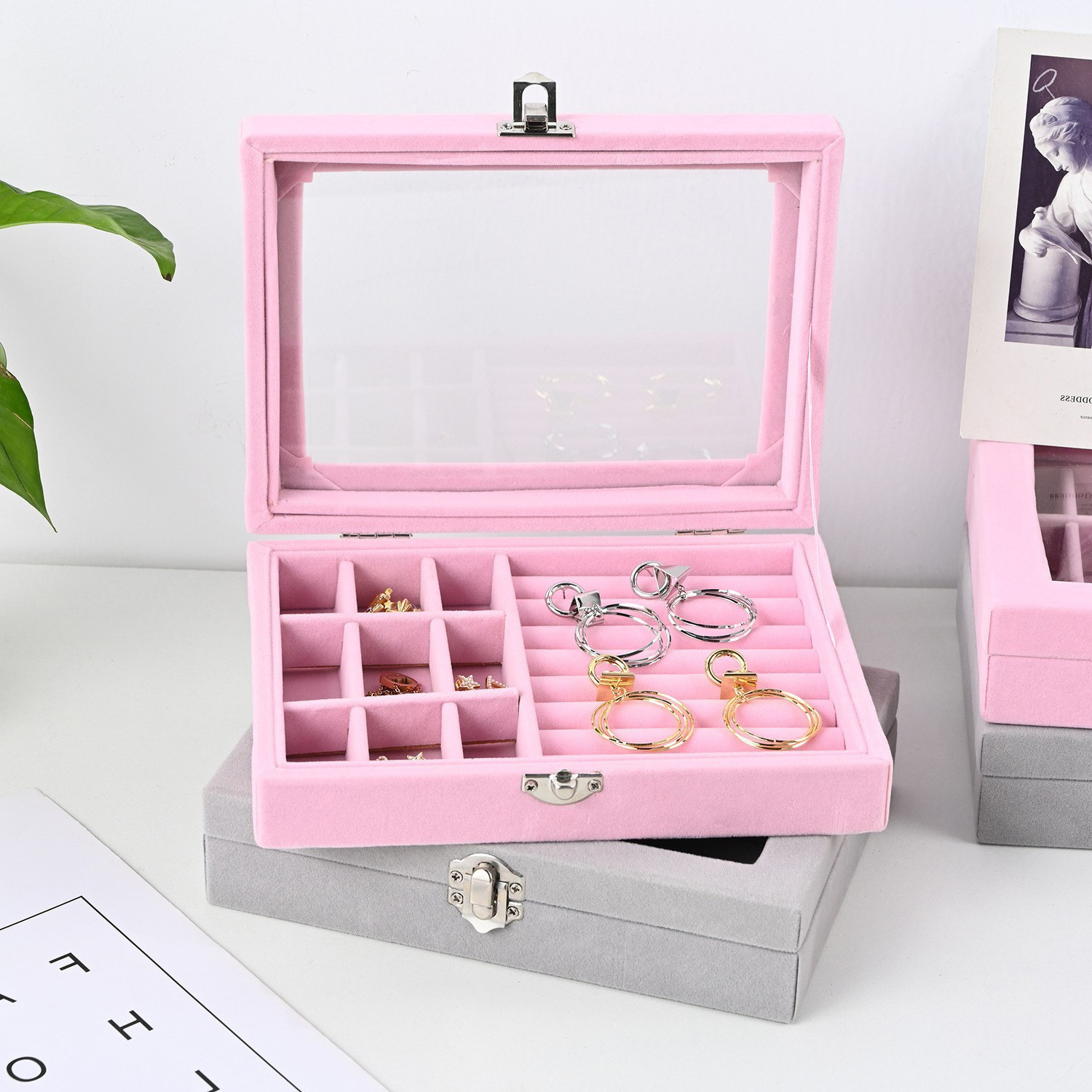 Jewelry Storage Box, Anti-Oxidation Earrings, Earrings, Necklaces, Velvet Acrylic Jewelry Box, Jewelry Box, Dust-Proof and Exquisite