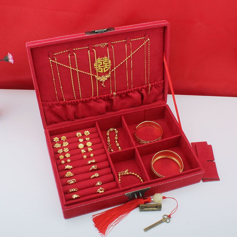 Anti-Oxidation Multi-Layer Wedding Jewelry Box Gift Box Medium Bronze Lock Bracelet Box Wedding Jewelry Storage Box