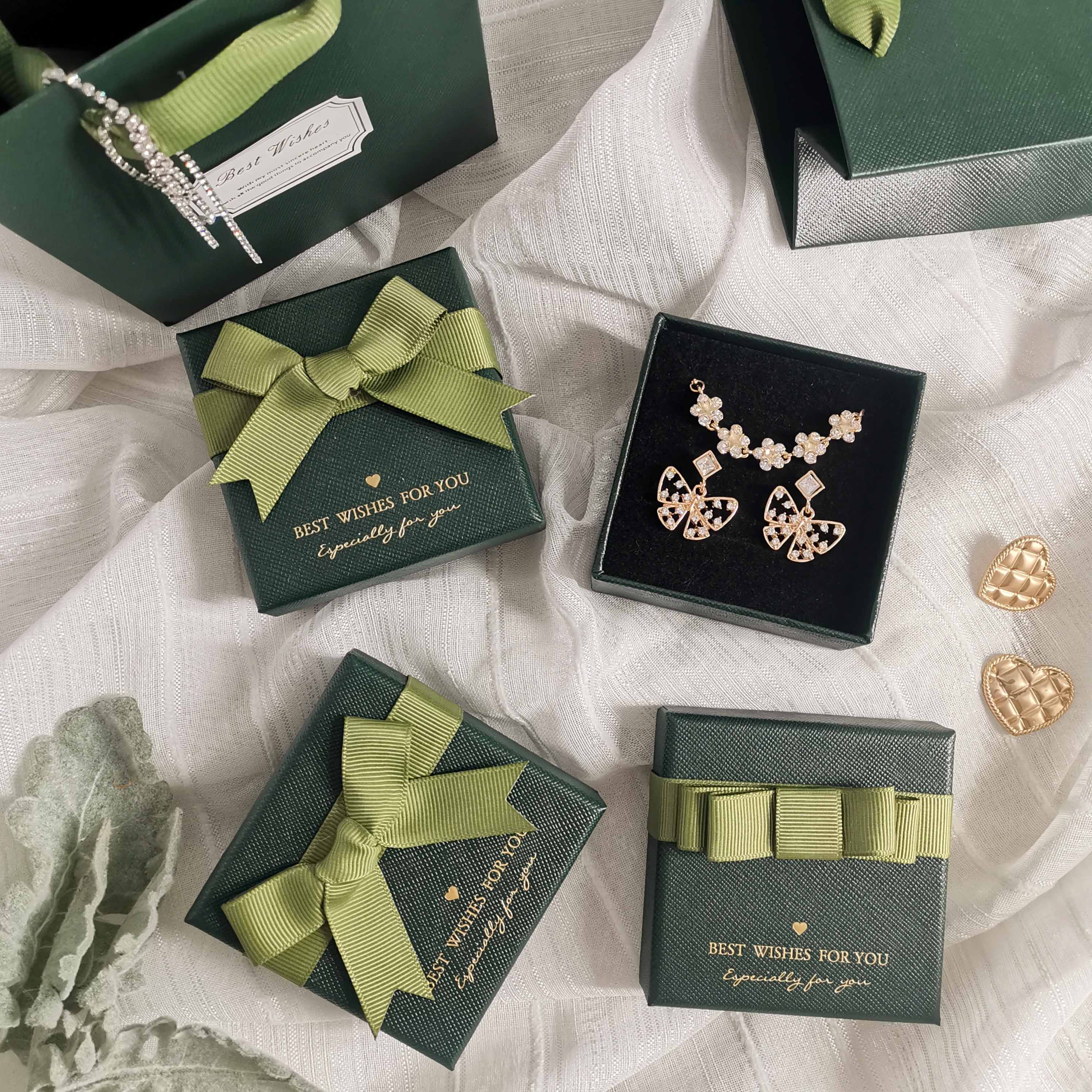 Forest Style Retro Green ~ Jewelry Box Necklace Earrings Packaging Box Bracelet Ring Earrings Bracelet String Jewelry Gift Box