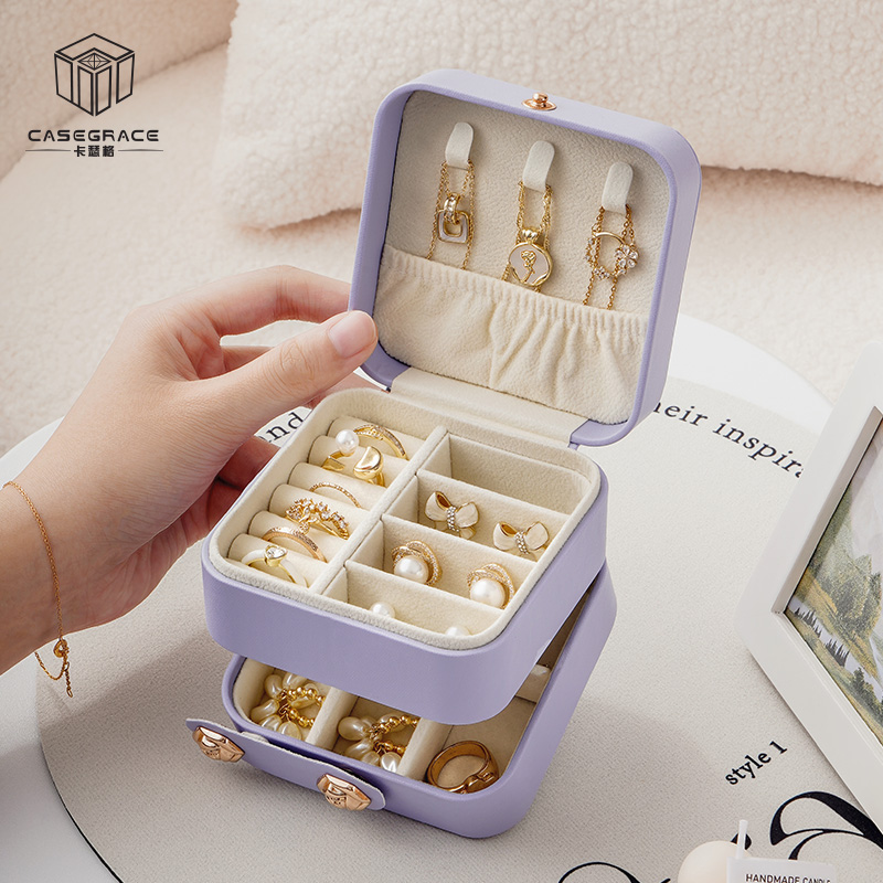 Travel Jewelry Box Storage Box Earrings Earrings Hand Jewelry Ring Necklace Portable Double Layer Wholesale Anti-Oxidation