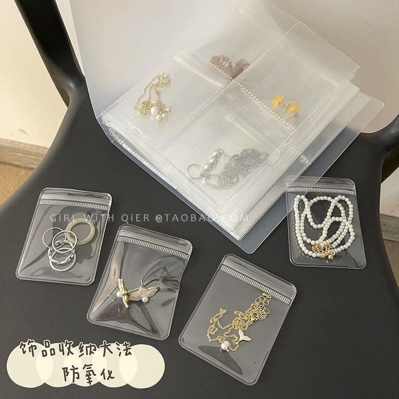 Transparent Storage Box Sealed Bag Silver Earrings Ring Necklace Anti-Oxidation Portable Jewelry Storage Book Pvc