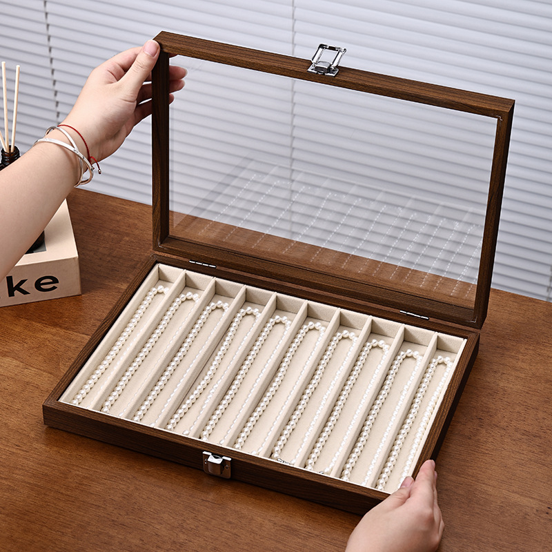 Walnut Color Jewelry Box with Lid, Bracelet, Pearl Necklace Storage Box, Hairpin Watch Special Dust-Proof and Moisture-Proof Box