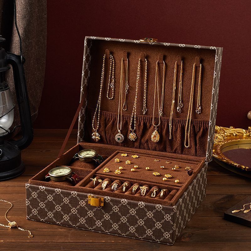 Jewelry Box Multi-Layer Anti-Oxidation Velvet Exquisite Earrings Necklace Bracelet Jewelry Storage Box High-End Accessories Jewelry Box