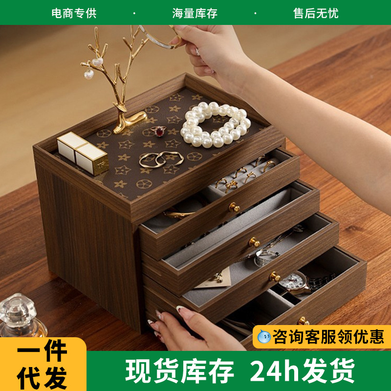 Walnut Multi-Layer Jewelry Storage Box High-End Dust-Proof Wooden Earrings Ring Necklace Jewelry Storage Box Dropshipping