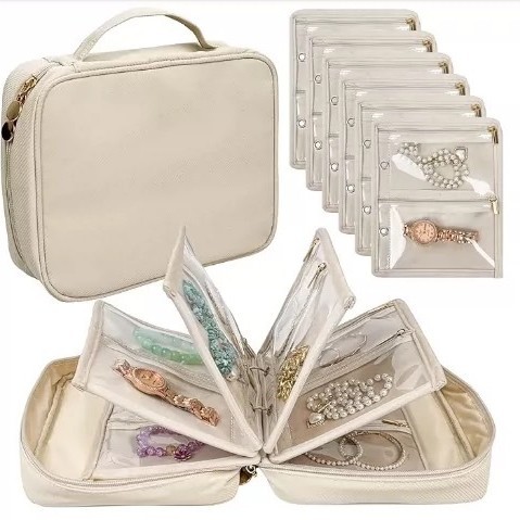 Cross-Border Travel Jewelry Bag Jewelry Storage Book Transparent Zipper Velvet Bag Earrings Ring Necklace Bracelet Zipper Bag