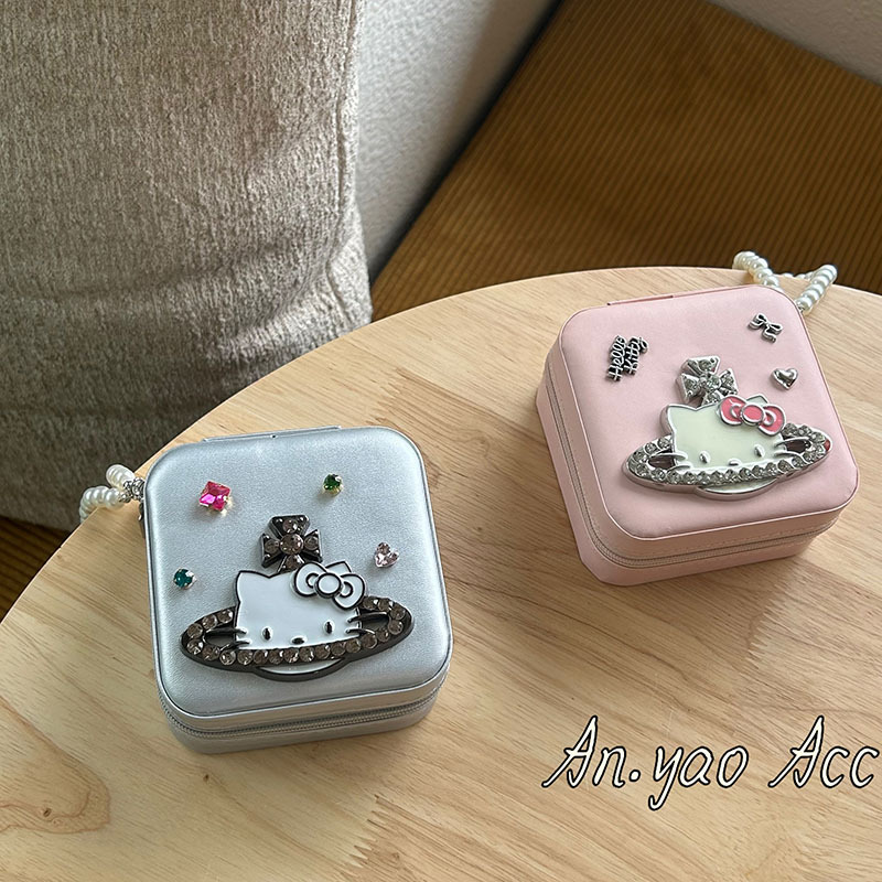 Kt Cat Saturn Leather Storage Box Travel Portable Box Necklace Ring Earrings Jewelry Box Anti-Oxidation