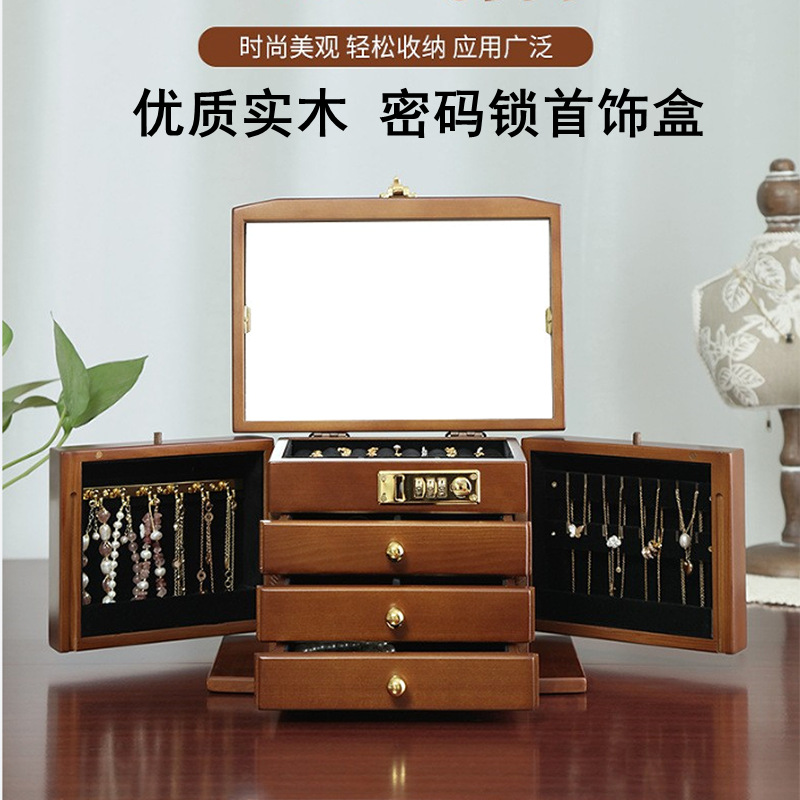 Password Lock Solid Wood Jewelry Box Jewelry Storage Box Princess European Style Jewelry Box Birthday Jewelry Anti-Oxidation Necklace